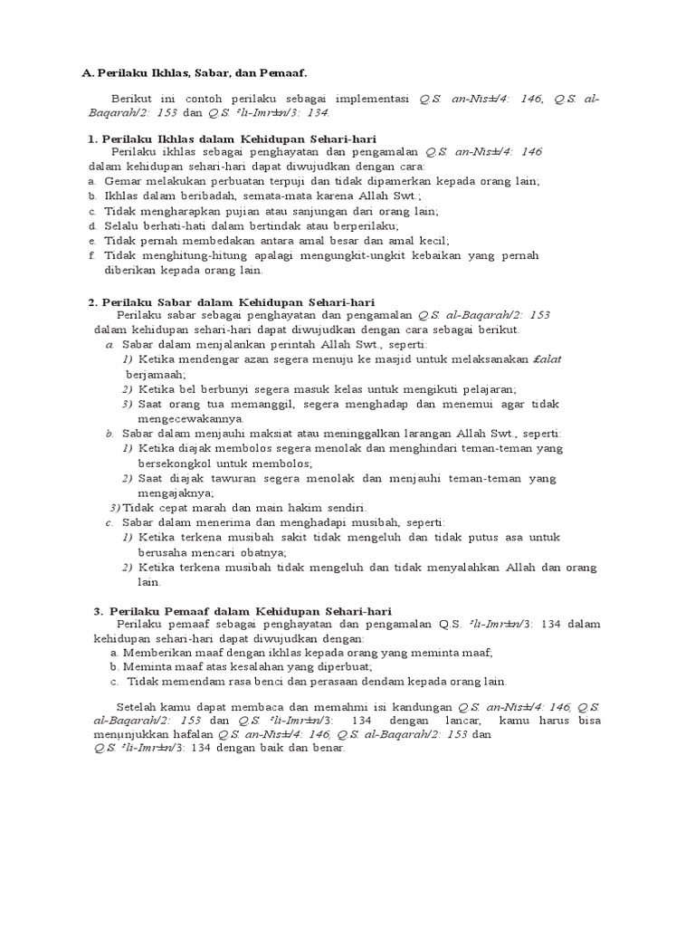 Kata ikhlas dan pasrah. Berikut ini contoh perilaku sebagai implementasi surah a n-Nis 4. Setidaknya ada 5 cara untuk memunculkan ikhlas di dalam diri.